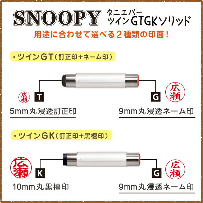 【スヌーピーツインGTGKキャップレス】 【スヌーピー GTK】 【スヌーピー スタンペン4Fメタル 】 【スヌーピースタンペン4Fキャップレス】 【スヌーピースタンペンGノック式】 【スタンペン専用補充インク5ccボトルタイプ】【仕様】 ●GT(9mm浸透ネーム印+5mm訂正印) ※9mm浸透ネーム印、5mm訂正印どちらも書体は楷書体、インク色は朱色のみ ●GK(9mm浸透ネーム印+10mm丸黒檀印) ※9mm浸透ネーム印の書体は楷書体、インク色は朱色のみ、10mm丸黒檀印は古印体のみ ※黒檀印はインク浸透式ではございません ・重量:13.4g ・サイズ:13φ×71.5(mm) ・材質:アルミ・真鍮 ※印鑑証明には使用しないでください この商品はポスト投函で発送できます ▼発送方法 ポスト投函(150円) 宅配便(別途追加料金) 備考 この商品はポスト投函メール便で発送可能です ※配送方法がポスト投函の場合は、当店発送日からご到着までに3〜5日(日祝除く)ほどかかりますので予めご了承ください (またお届け日時指定はできません。