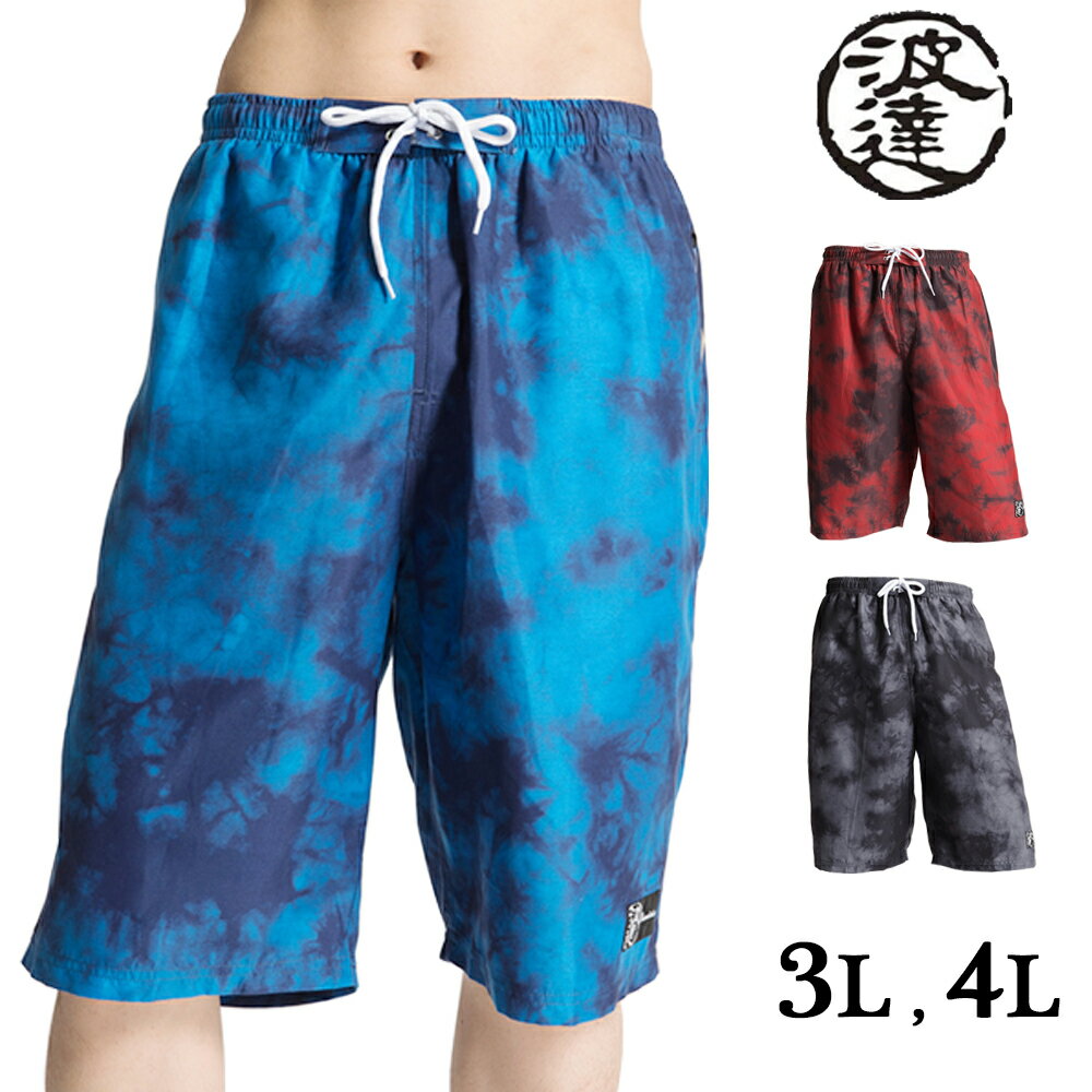 【 波達 ダークタイダイ柄 】インナー付き サーフパンツ 水着 海水パンツ 海パン ボードショーツ 紳士 メンズ namitatsu ナミタツ 波乗達人 大きいサイズ BIGサイズ 3L 4L タイダイ グラデーション ムラ染め シンプル おしゃれ