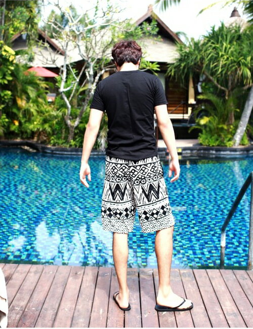 メンズ 水着 サーフパンツ 男性用 単品 カップル水着 ペア水着 ペア カップル ネイティブ柄 通販 水着 M L 2L XL ロンパン水着 モノトーン エスニック 柄
