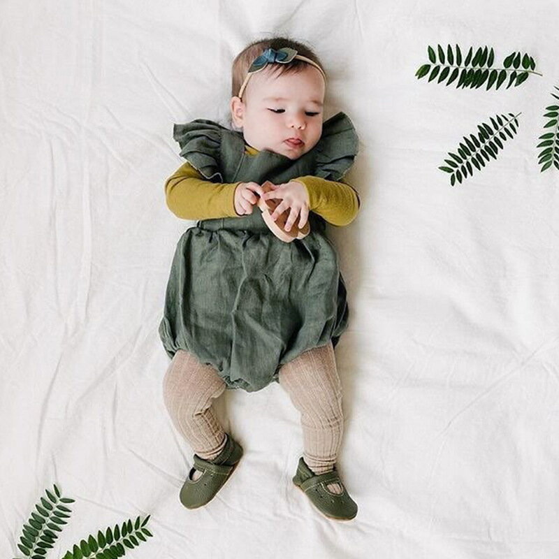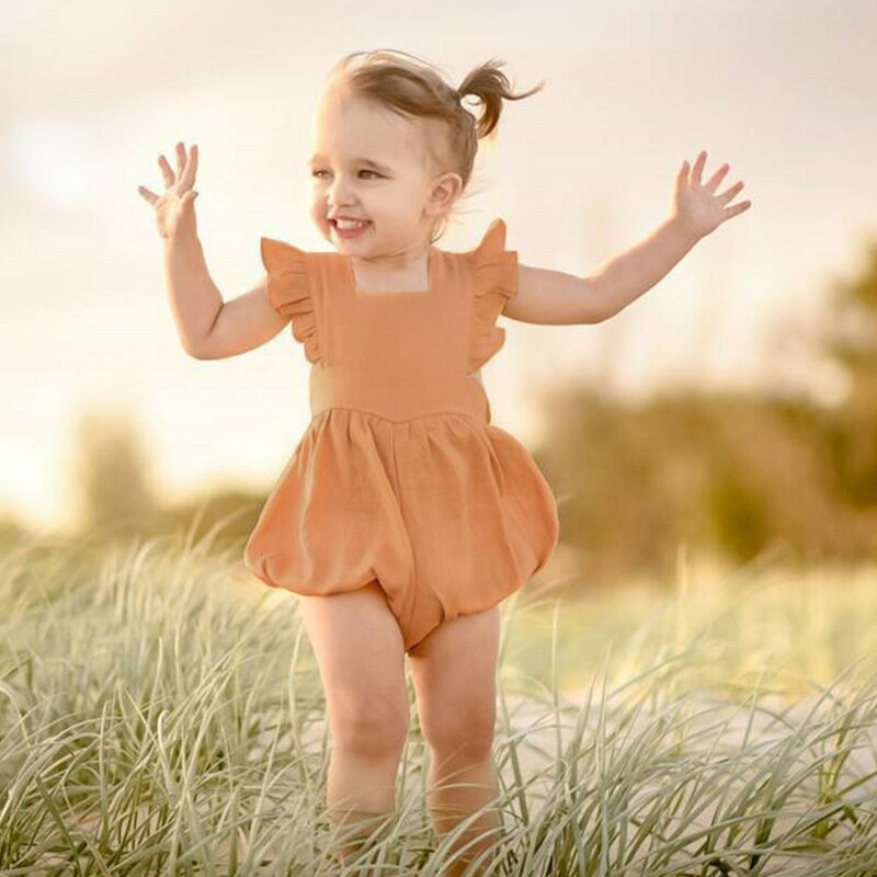 袖のフリルがとてもキュートなベビー用ロンパースです。