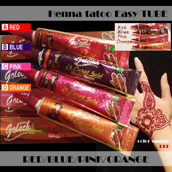 …ヘナ・タトゥーを自宅で試してみたい! ヘナタトゥー初体験の方や、 ちょっと試してみたい!けど パウダーから作るのが苦手な方にオススメします! レッド・ブルー・ピンク・オレンジ 綺麗な発色で目立つ!メヘンディ ブラウン・パープル・グリーン・ブラック カラフルメヘンディー 自宅に届いてすぐにヘナ・タトゥーがお試しいただけます。
